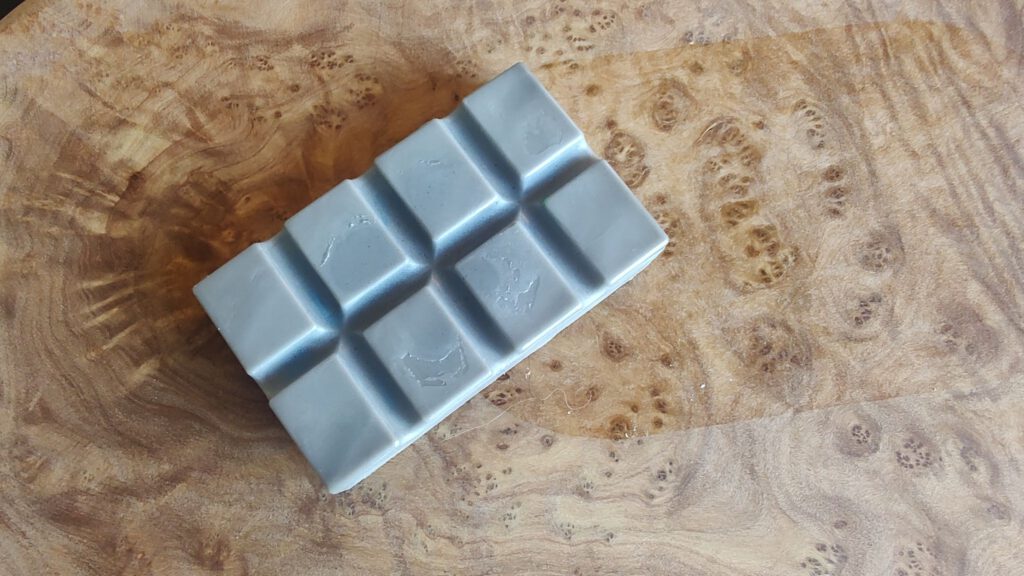 De kaars is vormgegeven als een bol, grijs van kleur: een knipoog naar de maan zelf die ’s nachts zacht licht verspreidt.